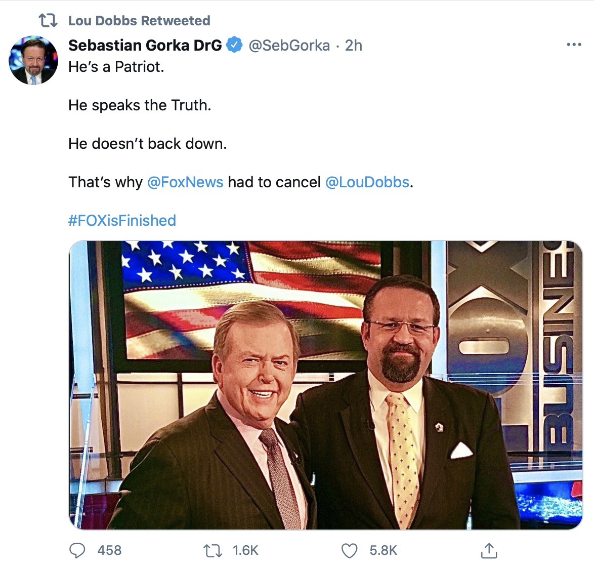 After Fox announced that Dobbs’ show was cancelled, the host took to Twitter.